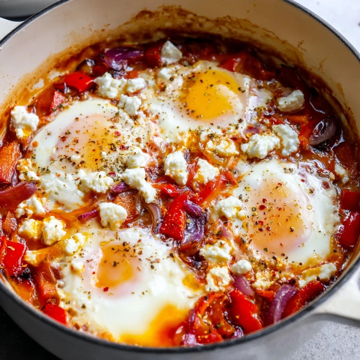 This dish is best enjoyed fresh from the oven while the eggs are perfectly set and the feta is warm and creamy. Leftovers can be stored in the refrigerator for up to 2 days, though the egg texture will change upon reheating.
