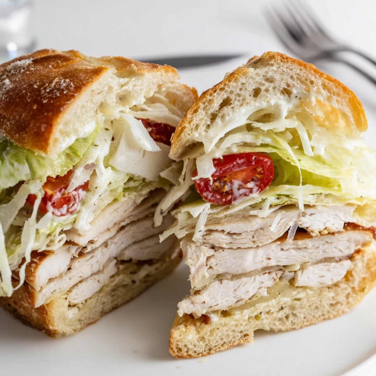 This hearty sandwich transforms the classic Caesar salad into a satisfying handheld. Grilled chicken breasts are seasoned and cooked to perfection, then layered with shredded romaine, shaved Parmesan, and a rich homemade dressing made with mayonnaise, lemon, and Dijon mustard. Everything gets stacked onto butter-toasted ciabatta rolls for crunch and flavor. The entire dish comes together in just 30 minutes, making it perfect for quick lunches or casual dinners. Customization options include adding bacon, avocado, or swapping in turkey for variety.