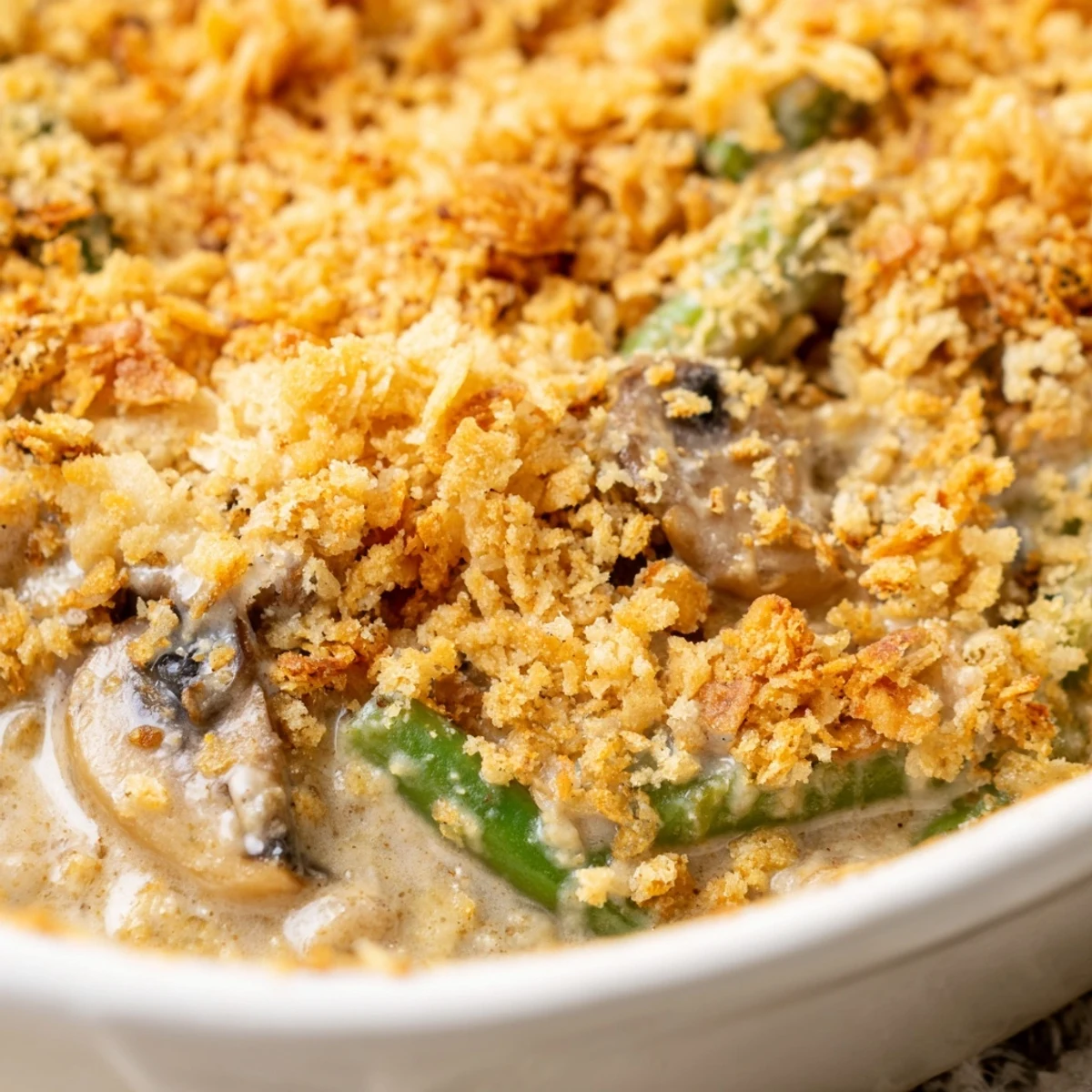 This comforting classic features fresh green beans nestled in a rich, velvety mushroom cream sauce accented with garlic and onion notes. The crowning glory is a generous layer of buttery Ritz cracker crumbs that bake to golden perfection, creating a delightful crunch that contrasts beautifully with the tender beans beneath.