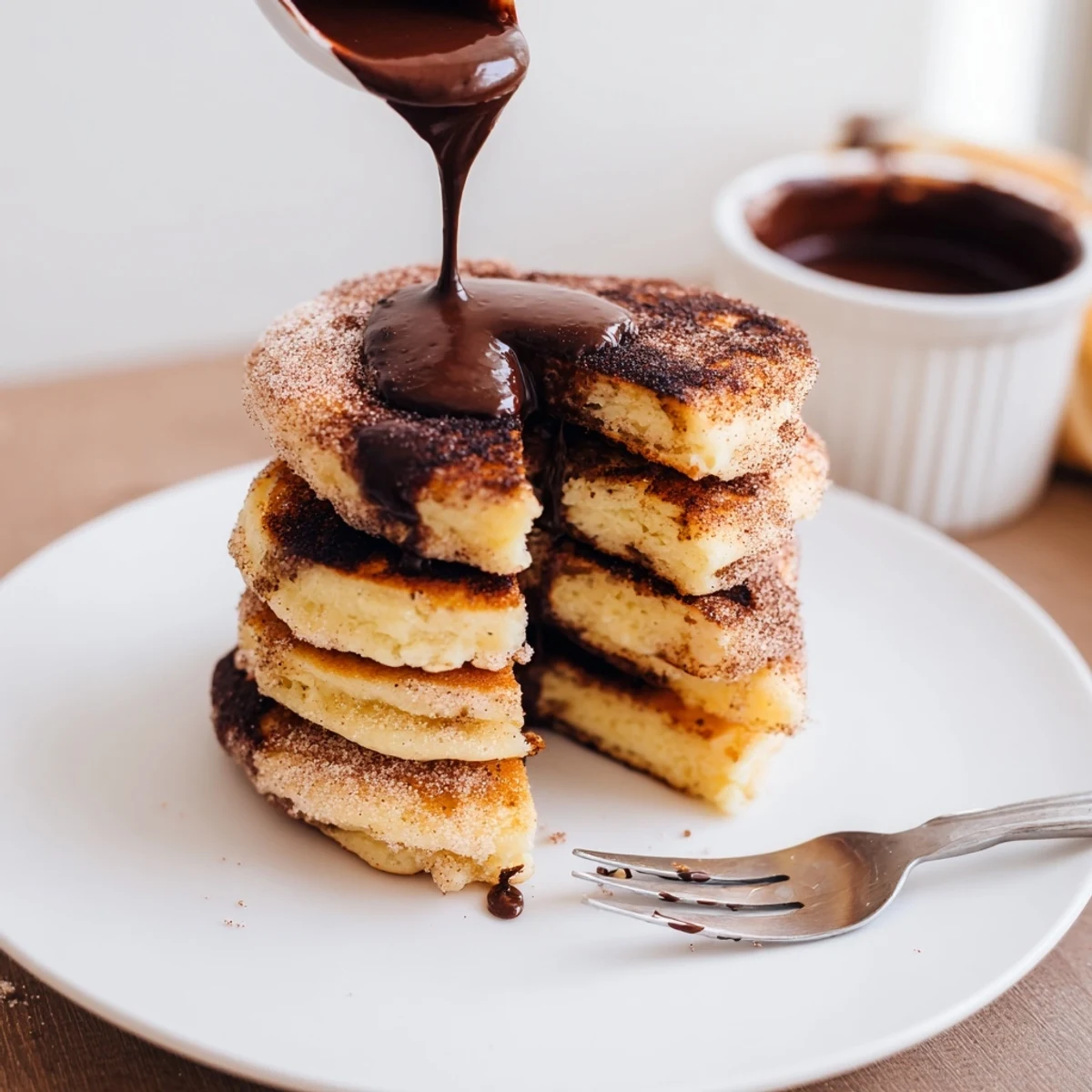 My roommate came home from a semester in Spain raving about street churros at 3 AM, and we spent weeks trying to recreate that magic in our tiny college kitchen. These pancakes were born from one particularly desperate midnight craving when we had no oil for frying but plenty of pancake mix. Now they are the only thing my kids request for birthday breakfasts.